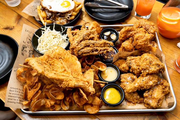 At this Korean import, fans of the brand pile in for the ultimate chimaek experience, brought to life through rounds of golden fried chicken alongside frothy pints of beer. Thanks to its wealth of sauce options, from Korean sweet chili to garlic chip, and its North York location, the casual spot is rarely quiet.